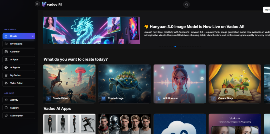 | Vadoo | Text, image, video | Multi-model AI, cinematic effects, filters, animation styles | Kling, Veo 3, Runway, Pika | Social + creative platforms |